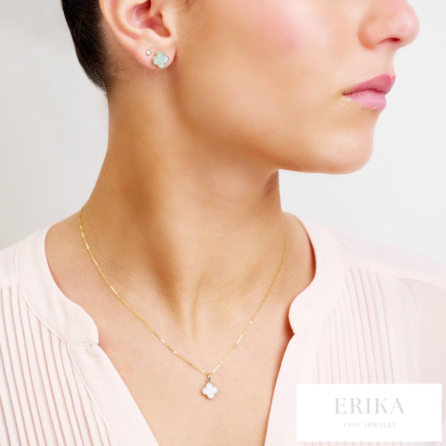 Mother of Pearl Clover Stud Earrings